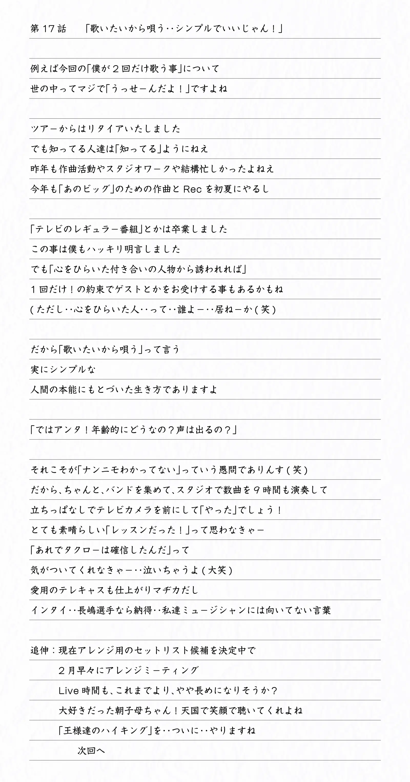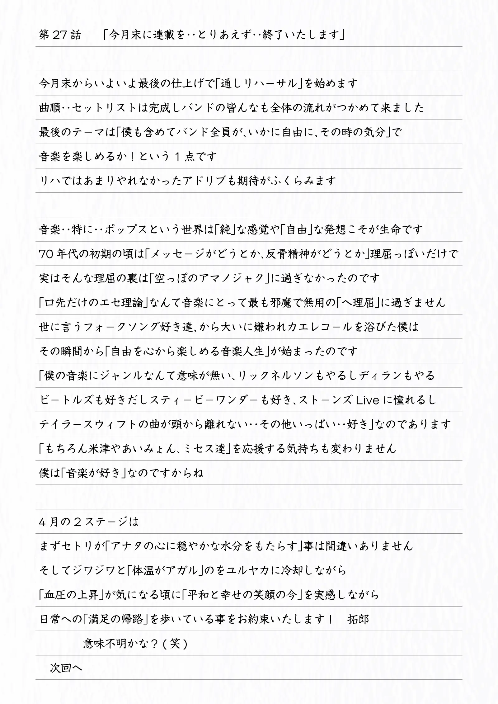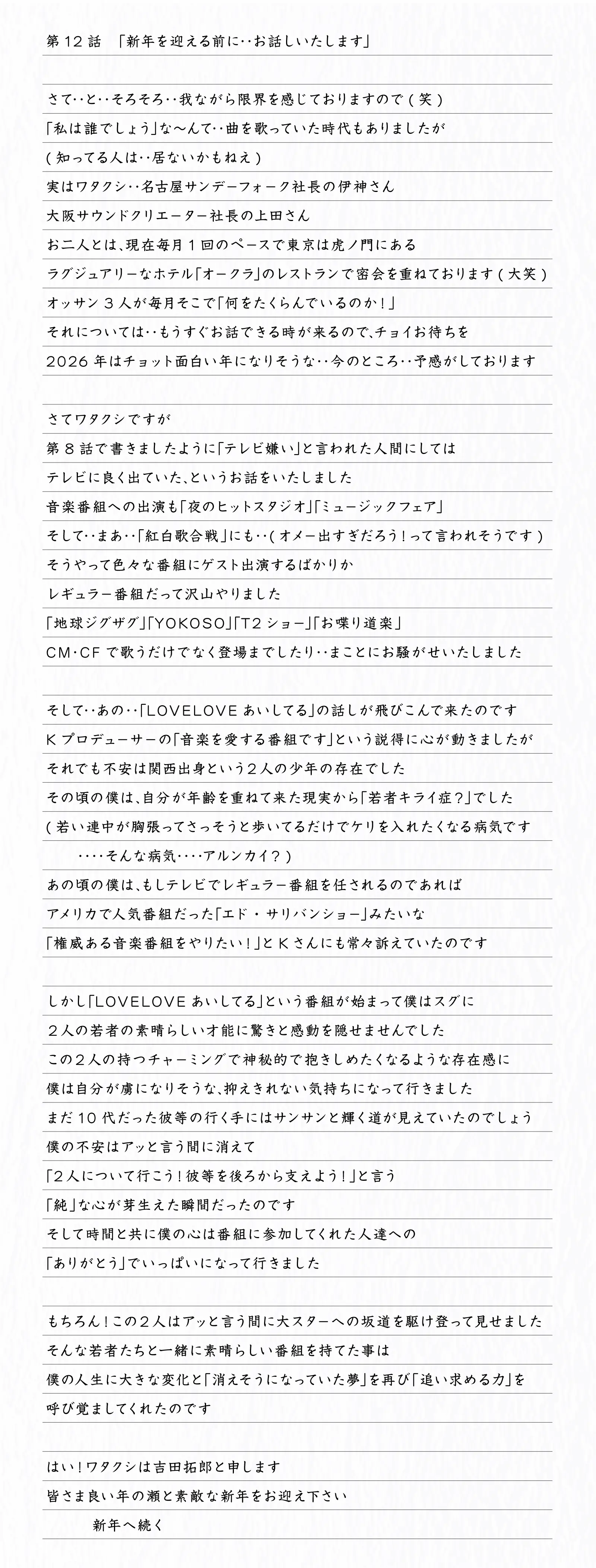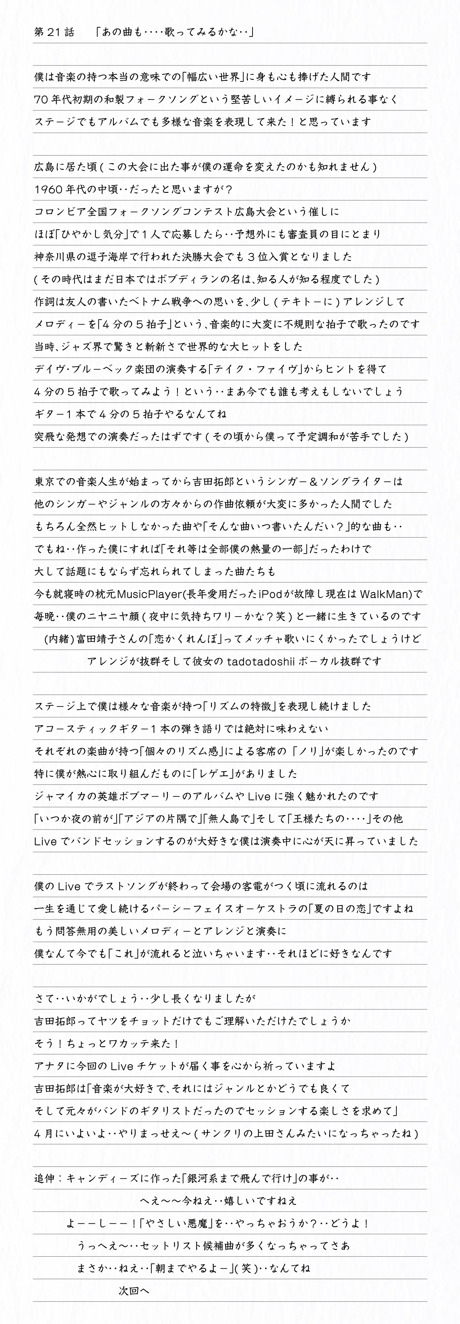 そして、素性を公表後は「吉田拓郎スペシャル連載エッセイ」とタイトルを改め不定期更新中