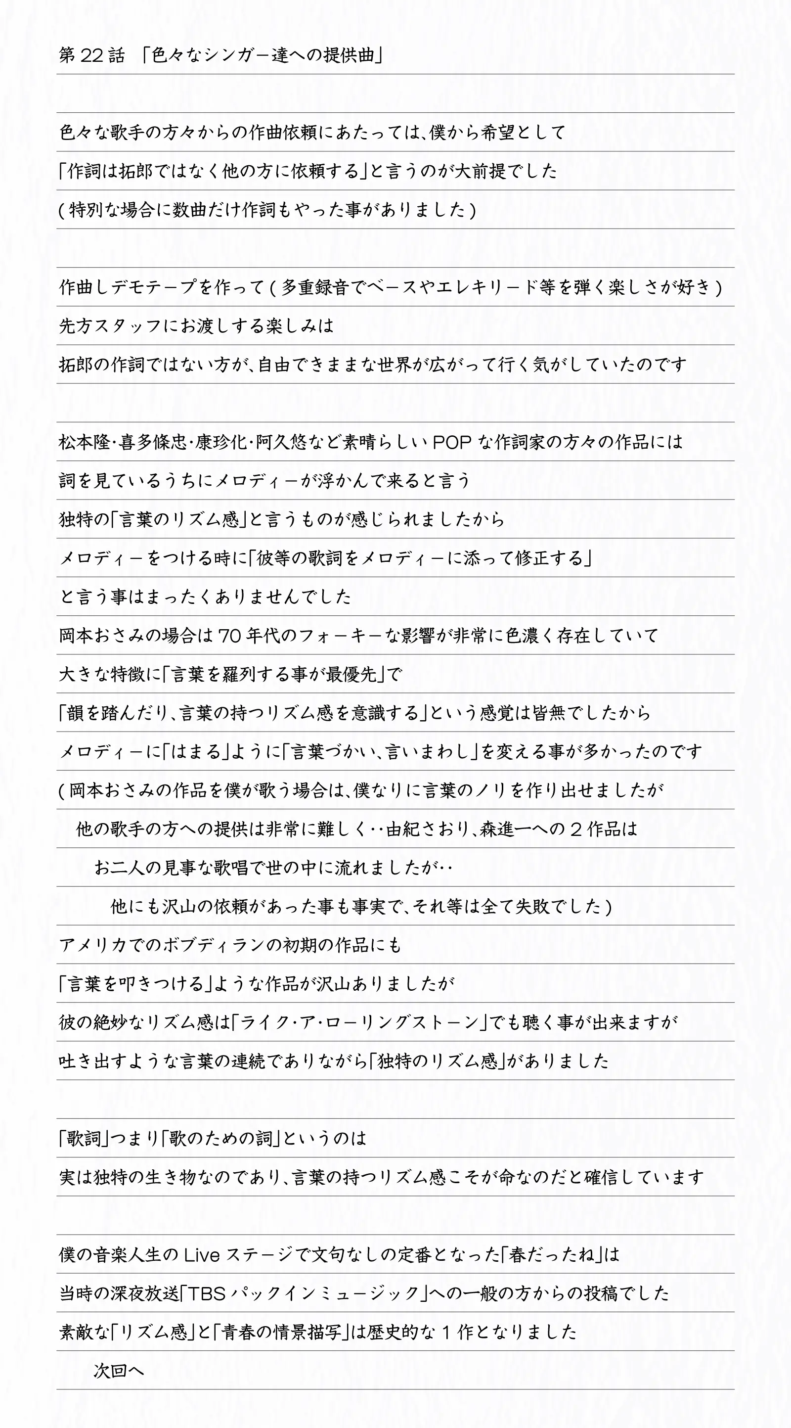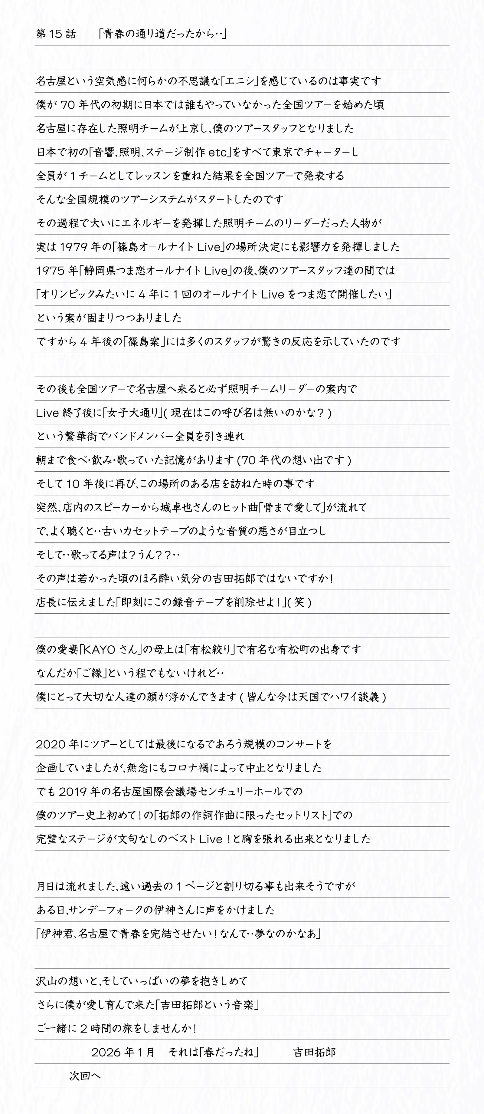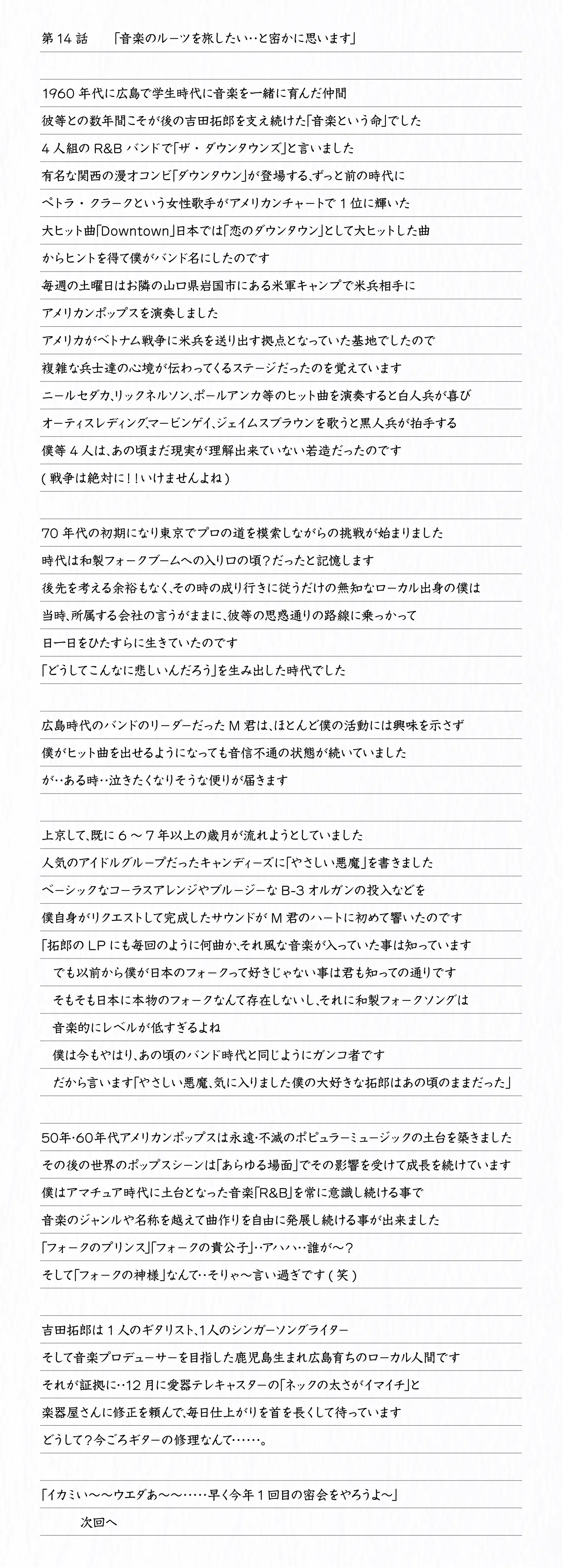 吉田拓郎スペシャル連載エッセイ